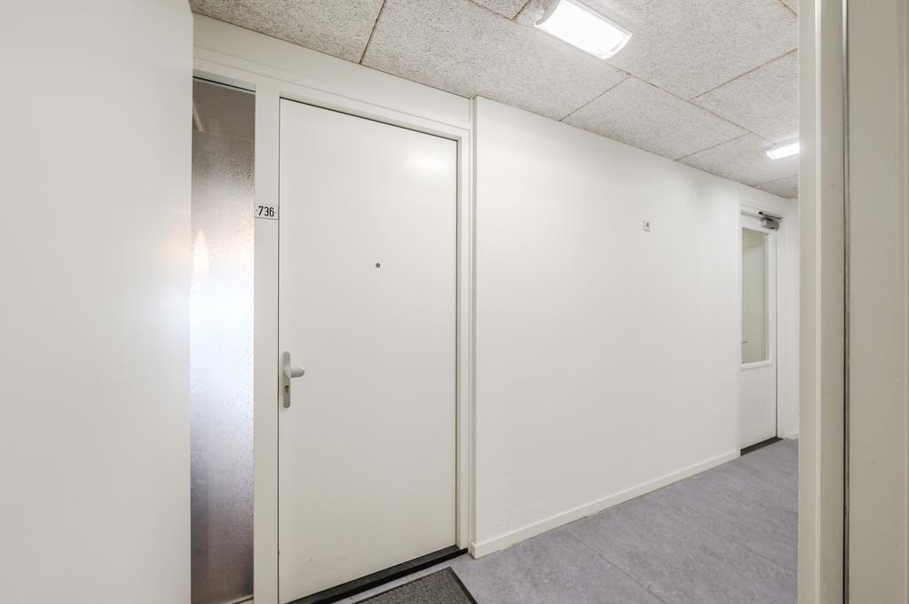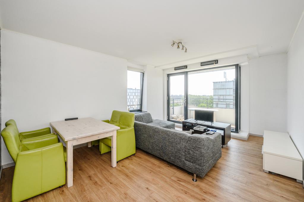 Binnenkomst in de centrale hal, met aan de voorzijde de brievenbussen en bellentableaus. Het trappenhuis of de lift brengt je naar de elfde verdieping, waar het appartement is gelegen. Je komt het appartement binnen in de hal met toegang tot alle vertrekken, te starten in de woonkamer. Wat een fijne ruimte!
