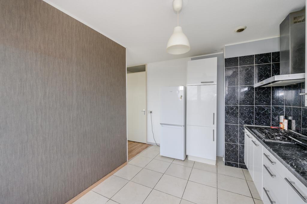 De half open keuken in royale rechte wandopstelling is afgewerkt met witte fronten en biedt lekker veel kast- en werkruimte. Daarnaast is er de nodige inbouwapparatuur aanwezig, zoals een 5 pits gaskookplaat, afzuigkap, vaatwasser, magnetron en een oven. De ruime badkamer is voorzien van een wastafelmeubel met opbergruimte en een douche met thermostaatkraan. Het toilet is een aparte ruimte, gelegen in de hal. Direct naast het toilet bevindt zich een ruime inpandige berging, met hier de cv-opstelling en aansluiting voor de wasapparatuur. Verder telt het appartement twee slaapkamers. Beide vertrekken zijn van goed tot ruim formaat en heerlijk licht dankzij de grote ramen. Het overdekte balkon, gelegen op het altijd zonnige zuiden, biedt een heerlijk rustgevend uitzicht.