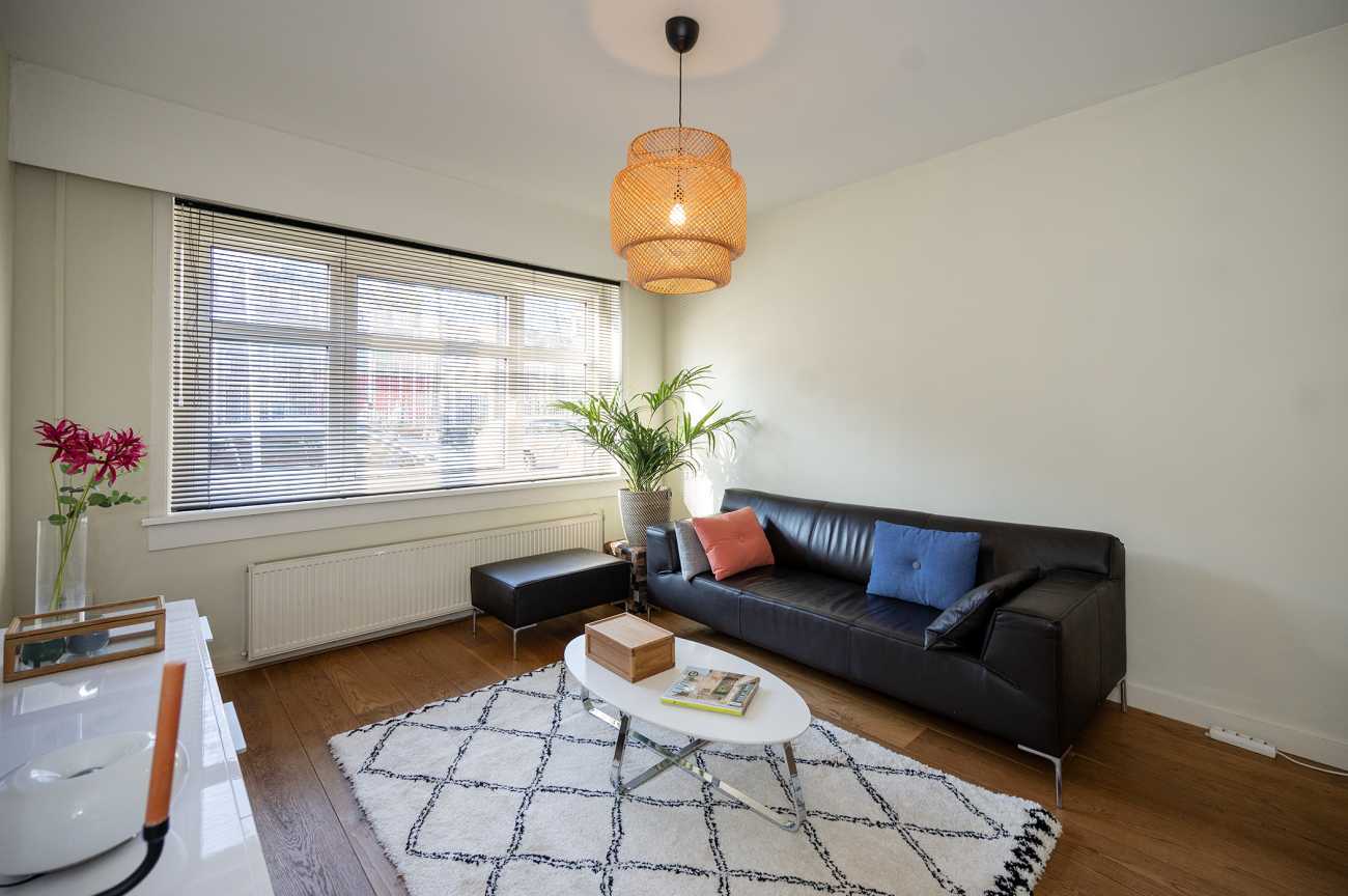 Via uw eigen voordeur heeft u toegang tot het appartement. De doorzon woonkamer is zeer ruim en licht en ingedeeld met de living aan de voorzijde en de dining aan de achterzijde. Vanuit de dining loopt u via twee openslaande deuren de verzorgde tuin in. De tuin ligt op het zuidoosten en heeft een ruim terras en houten berging. Naast de dining is de afgesloten keuken. De keuken is modern uitgevoerd en voorzien van alle gemakken. Naast de keuken is de ouderslaapkamer en heb je ook toegang tot de tuin via twee openslaande deuren. De tweede kamer ligt aan de voorzijde en is goed te gebruiken als werkkamer of logeerkamer. In het midden bevindt zich de badkamer die is voorzien van een ligbad, toilet, wastafel en handdoek radiator.