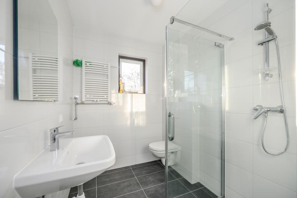 Via de trap bereikt u de eerste verdieping waar u drie ruime slaapkamers treft. De badkamer is voorzien van een toilet, wastafel en inloopdouche.