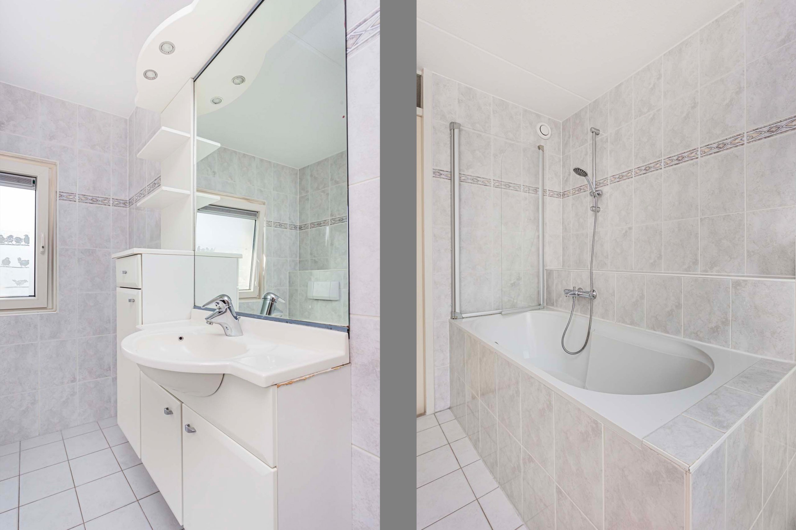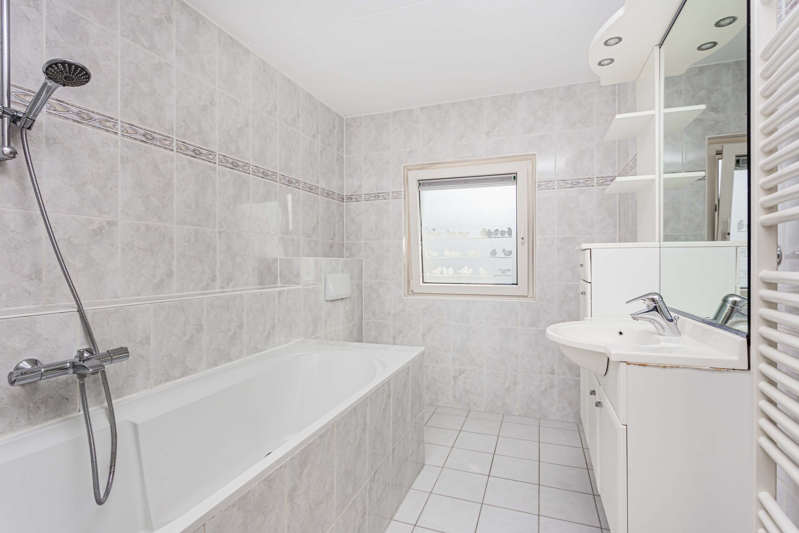 De overloop geeft toegang tot drie ruime slaapkamers, allen voorzien vloerbedekking. De badkamer is voorzien van een ligbad met douchekop, toilet, radiator en een wastafelmeubel met genoeg opbergruimte.