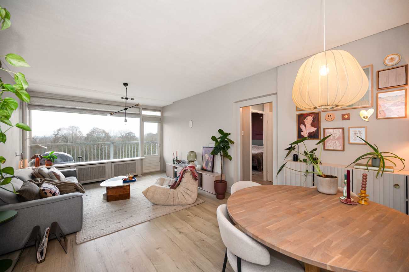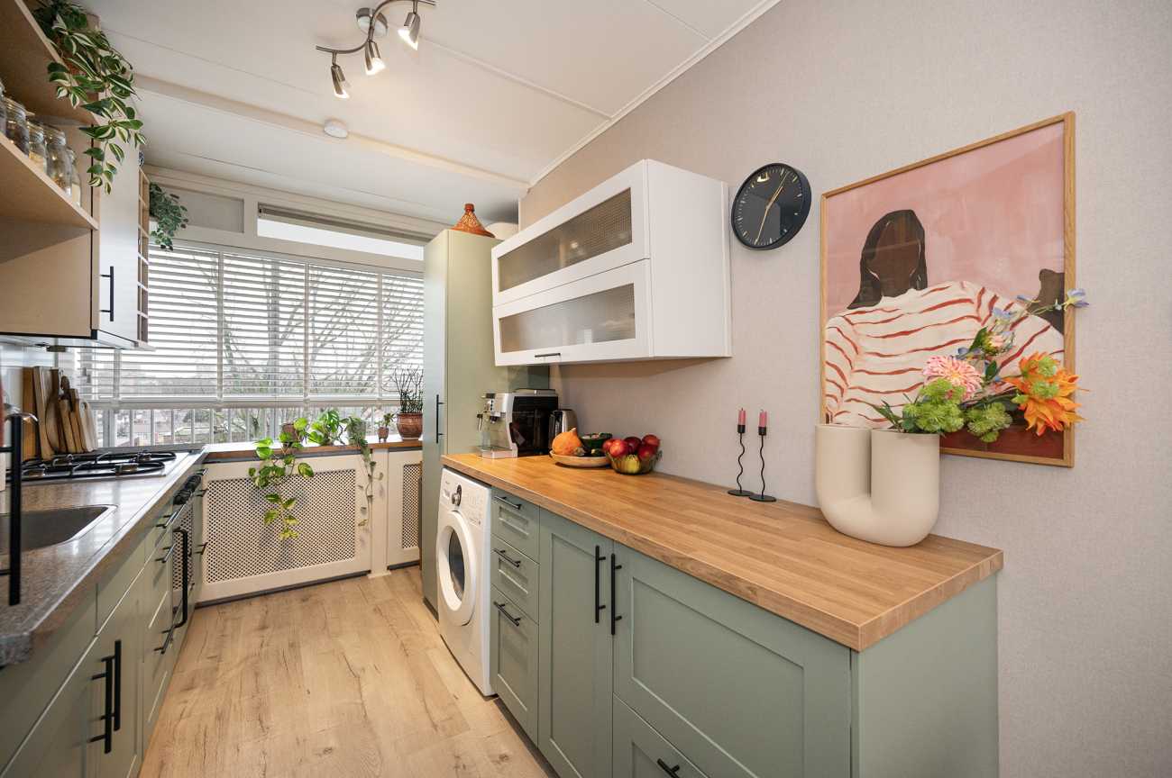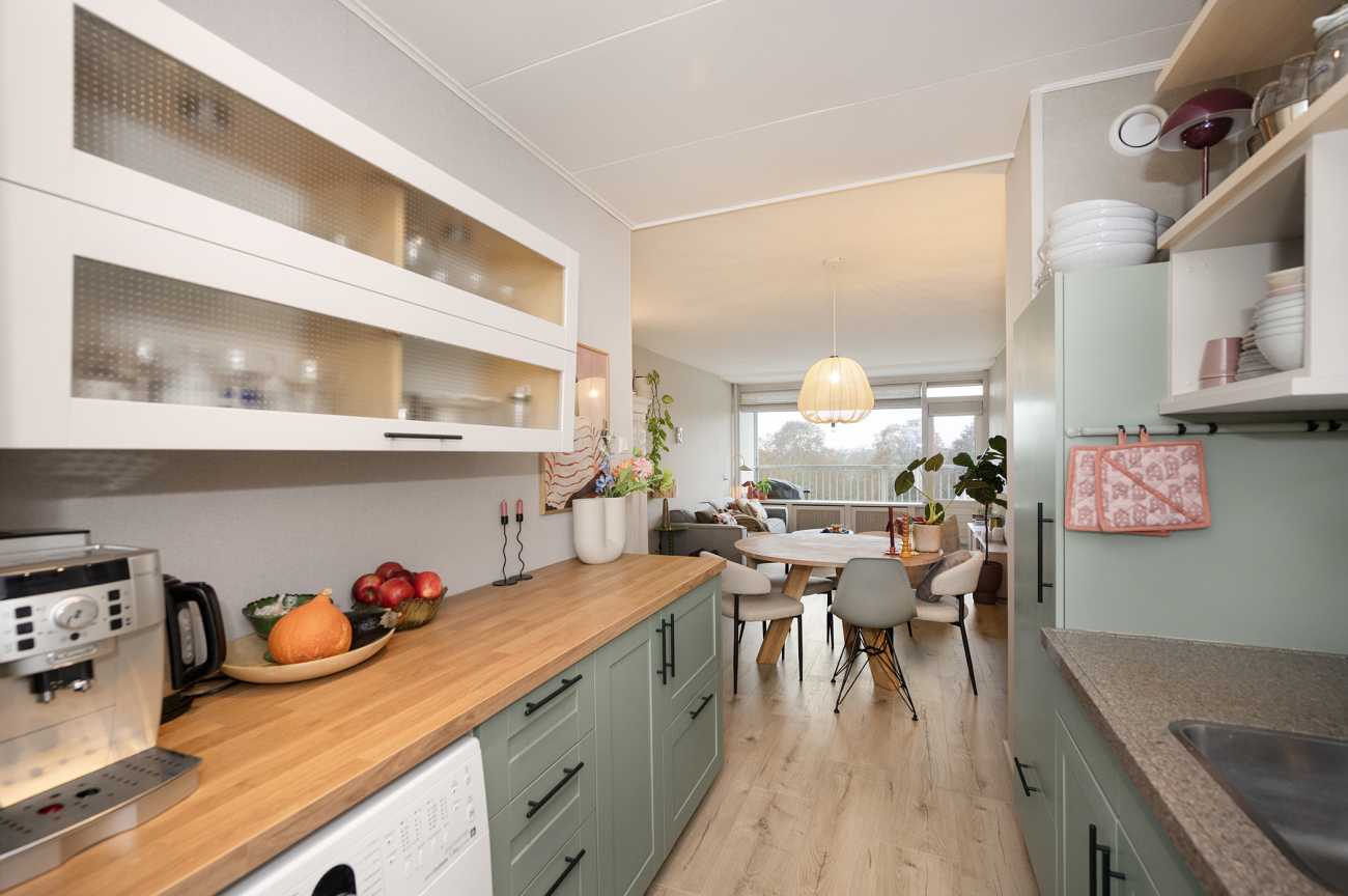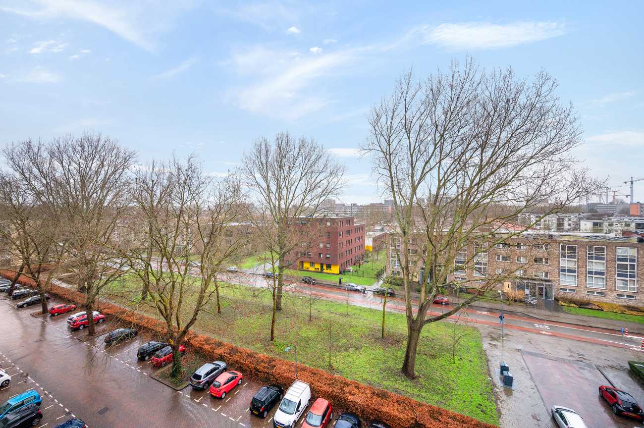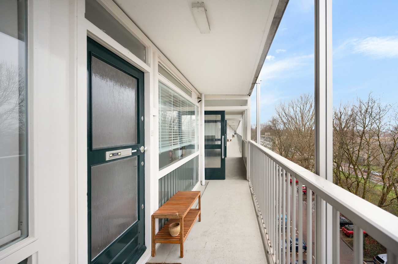 Doordat de woning aan het einde van de galerij ligt, is er extra privacy en ruimte om aan de voorzijde een klein zitje te creëren perfect voor een rustig moment in de ochtendzon. Aan de achterzijde beschikt het appartement over een royaal balkon op het westen, met uitzicht over het aangrenzende park. Hier geniet je volop van open luchten en indrukwekkende zonsondergangen. De woning is praktisch ingedeeld, met ruime vertrekken en een aangename hoeveelheid daglicht. Het appartement is recent gemoderniseerd en voorzien van verbeterde isolatie, wat heeft gezorgd voor een aanzienlijk lager energieverbruik en een hoog wooncomfort. Ook de gemeenschappelijke ruimtes, waaronder de entree, lift en balkons, zijn onlangs vernieuwd.