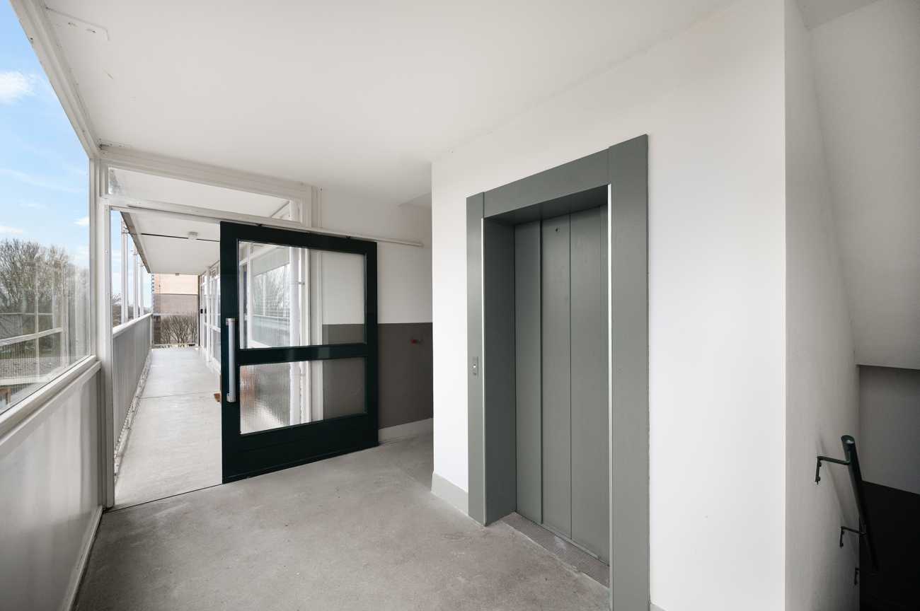 Een beveiligde entree die uitsluitend toegankelijk is voor bewoners, met een centrale hal voorzien van lift en trappenhuis. Het appartement bevindt zich direct naast de lift, als één na laatste woning op de galerij.