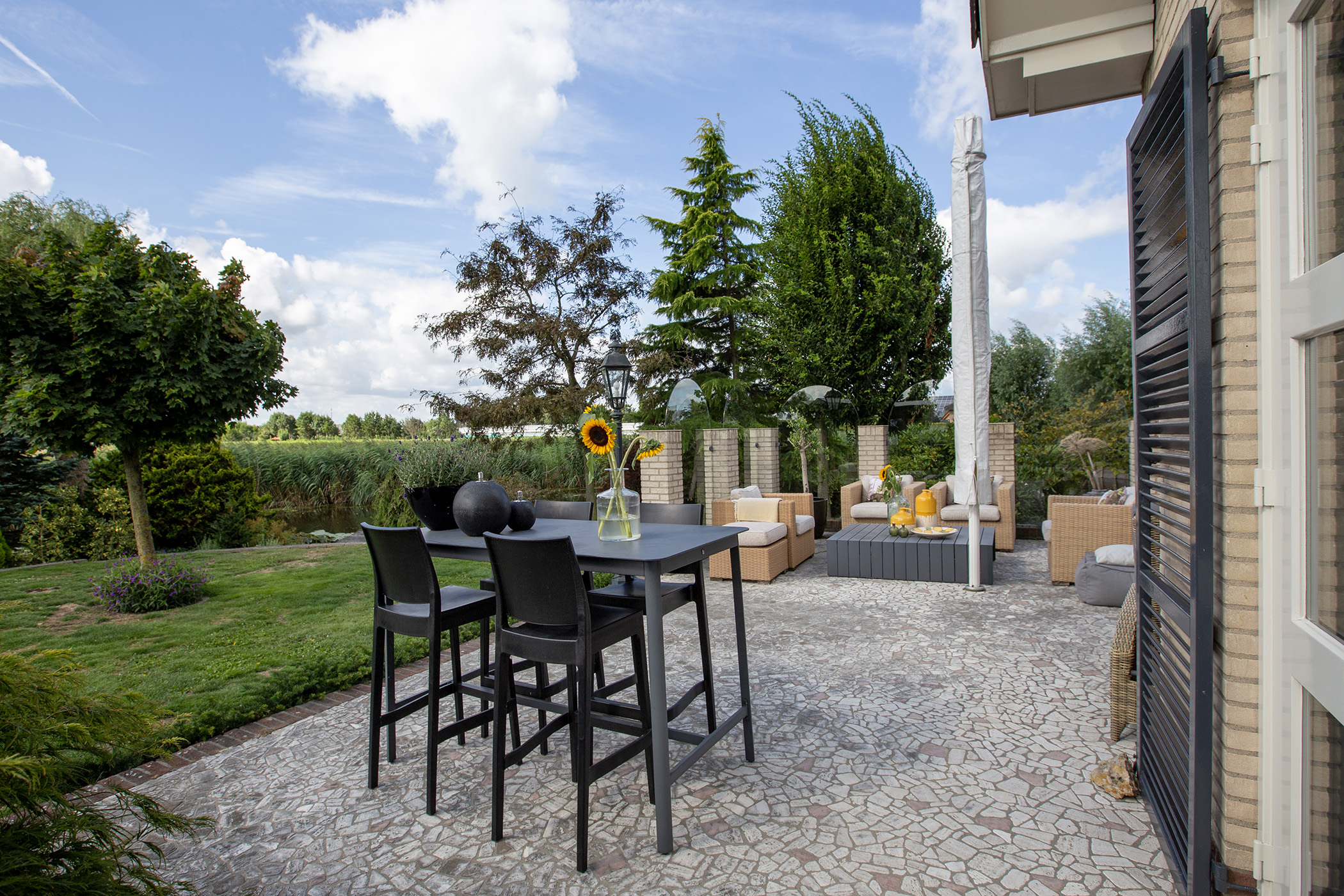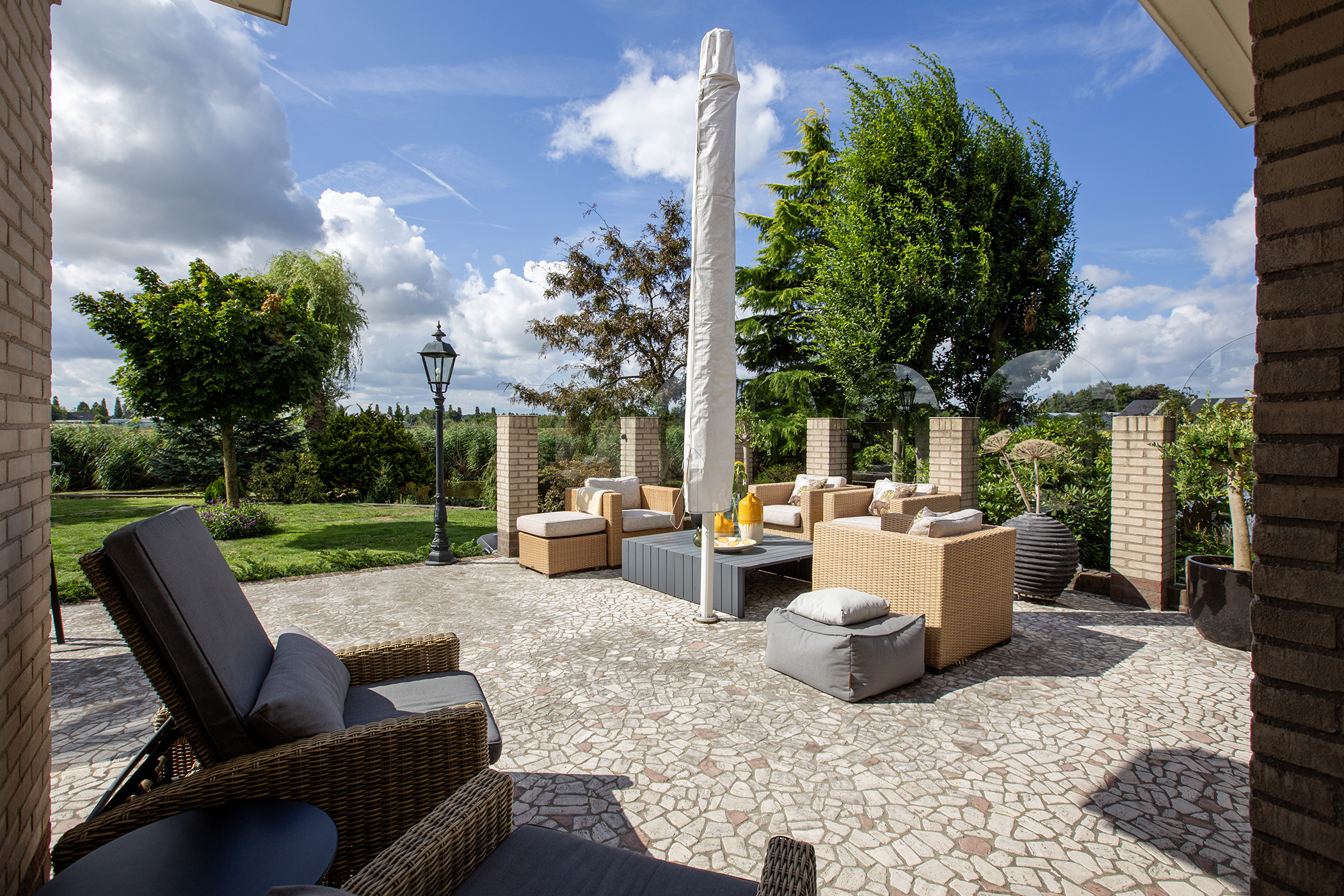 De fraai aangelegde tuin rondom de woning is zeer verzorgd en biedt een heerlijke plek om te ontspannen. Er is een overdekt terras waar u het hele jaar door van de buitenlucht kunt genieten.