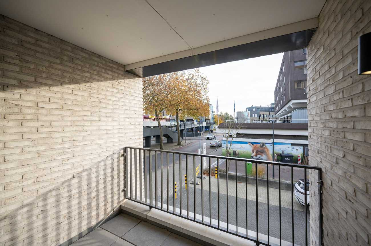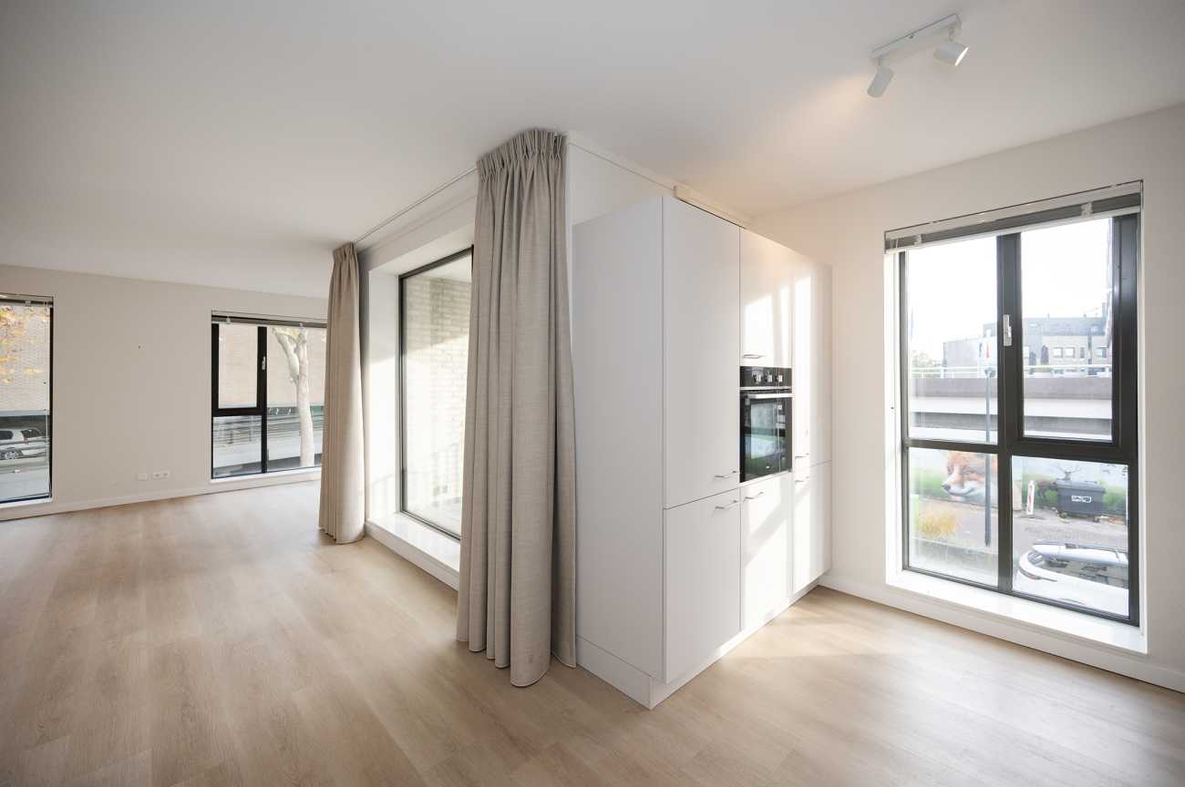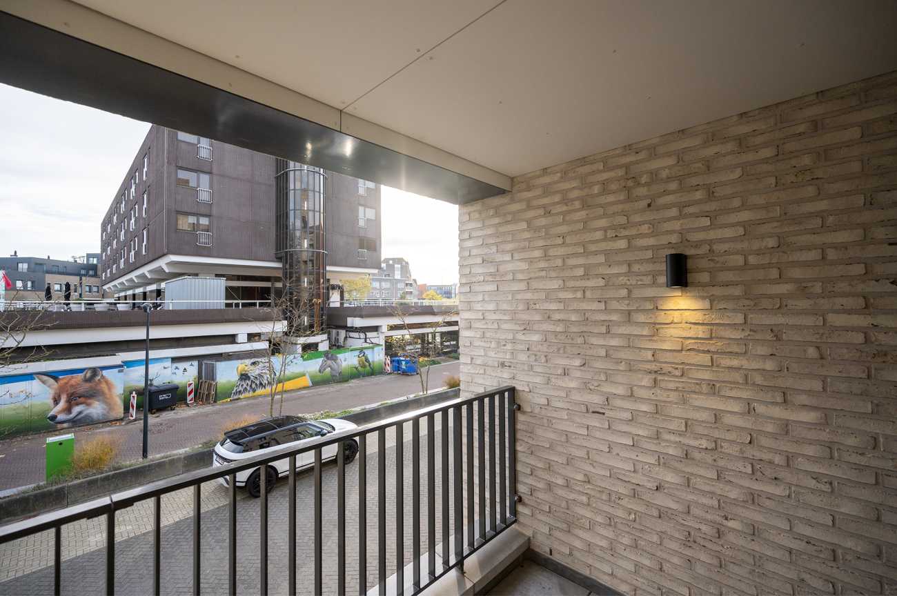 Bij binnenkomst in het appartement komt u in een ruime hal met de meterkast. Vanuit de hal bereikt u de woonkamer met open keuken, de badkamer, beide slaapkamers, de technische ruimte en het separate toilet. De open indeling in combinatie met de twee slaapkamers zorgt voor een overzichtelijke en ruimelijke uitstraling. De woonkamer heeft veel natuurlijk licht dankzij de grote raampartijen en biedt toegang tot het balkon met uitzicht op het centrum. De moderne keuken is uitgerust met ingebouwde apparatuur, waaronder een inductiekookplaat, afzuigkap, vaatwasser, koelkast, vriezer en combi-oven. De master bedroom is ruim genoeg voor een tweepersoonsbed en aanvullende opbergmogelijkheden. Ook de tweede slaapkamer heeft een praktische indeling en goede afmetingen. De badkamer is modern uitgevoerd, volledig betegeld en voorzien van een ruime inloopdouche en een wastafel met spiegelverlichting. In de technische ruimte vindt u de aansluitingen voor zowel de wasmachine als de droger. Het gehele appartement is afgewerkt met een nette laminaatvloer en beschikt over vloerverwarming en -koeling.
