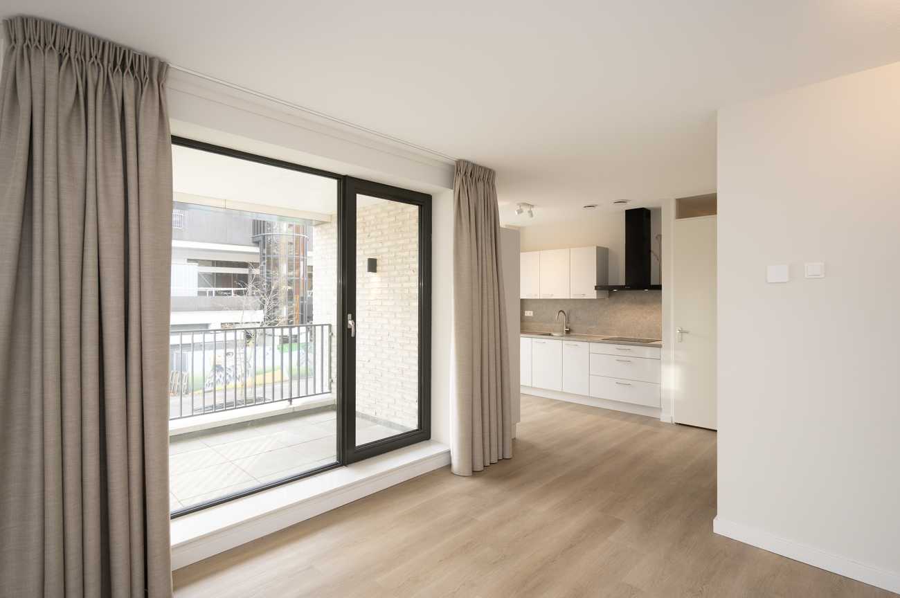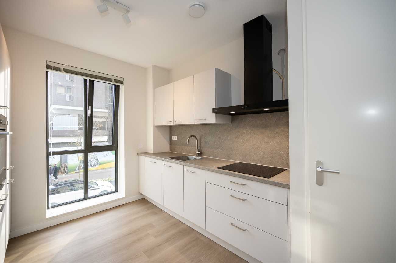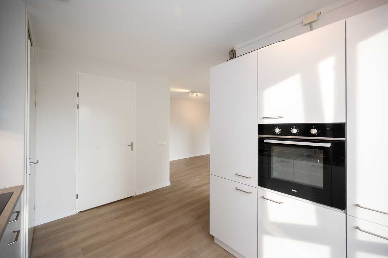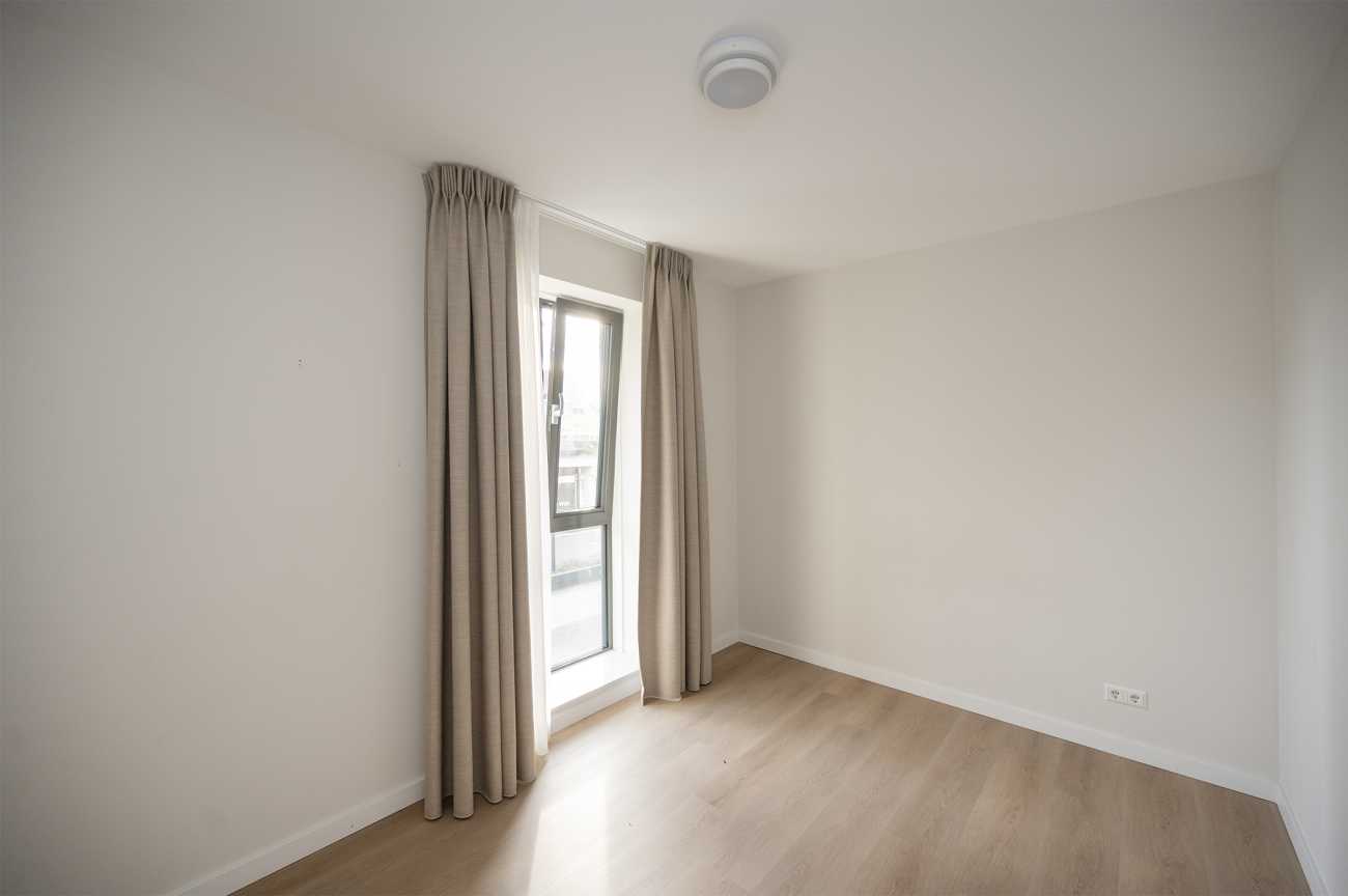 Bij binnenkomst in het appartement komt u in een ruime hal met de meterkast. Vanuit de hal bereikt u de woonkamer met open keuken, de badkamer, beide slaapkamers, de technische ruimte en het separate toilet. De open indeling in combinatie met de twee slaapkamers zorgt voor een overzichtelijke en ruimelijke uitstraling. De woonkamer heeft veel natuurlijk licht dankzij de grote raampartijen en biedt toegang tot het balkon met uitzicht op het centrum. De moderne keuken is uitgerust met ingebouwde apparatuur, waaronder een inductiekookplaat, afzuigkap, vaatwasser, koelkast, vriezer en combi-oven. De master bedroom is ruim genoeg voor een tweepersoonsbed en aanvullende opbergmogelijkheden. Ook de tweede slaapkamer heeft een praktische indeling en goede afmetingen. De badkamer is modern uitgevoerd, volledig betegeld en voorzien van een ruime inloopdouche en een wastafel met spiegelverlichting. In de technische ruimte vindt u de aansluitingen voor zowel de wasmachine als de droger. Het gehele appartement is afgewerkt met een nette laminaatvloer en beschikt over vloerverwarming en -koeling.