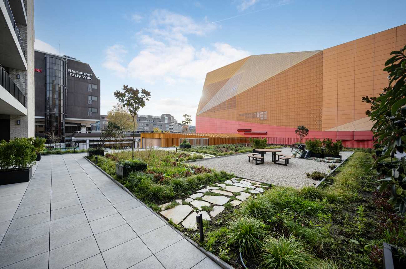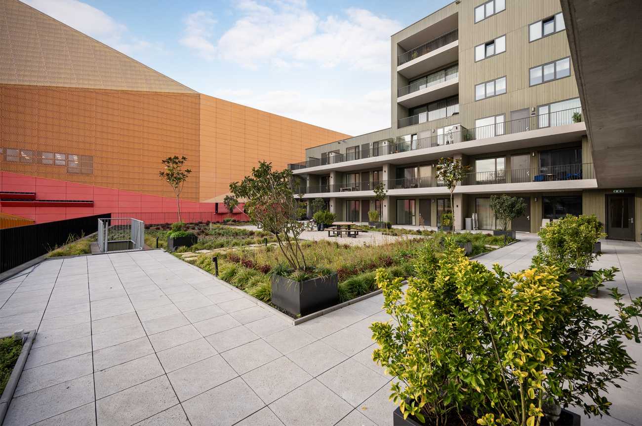 Het balkon is gesitueerd op het zuiden. De gezamenlijke tuin is speels ingericht, eenvoudig bereikbaar (uitsluitend toegankelijk voor bewoners) en biedt diverse mogelijkheden om als ontspannings- of loungeplek te worden gebruikt.