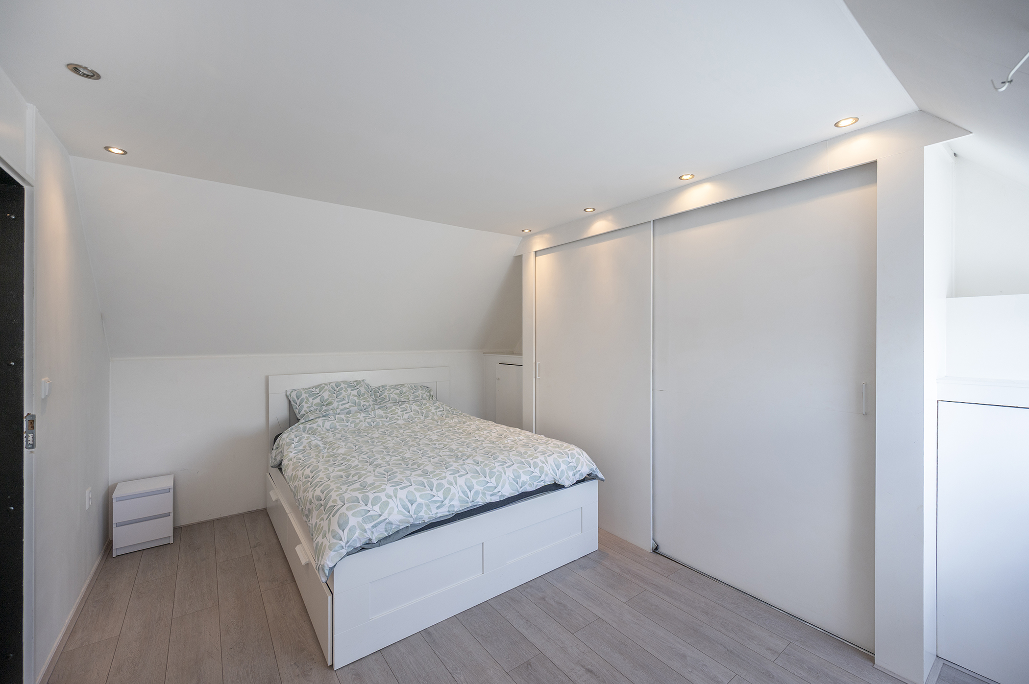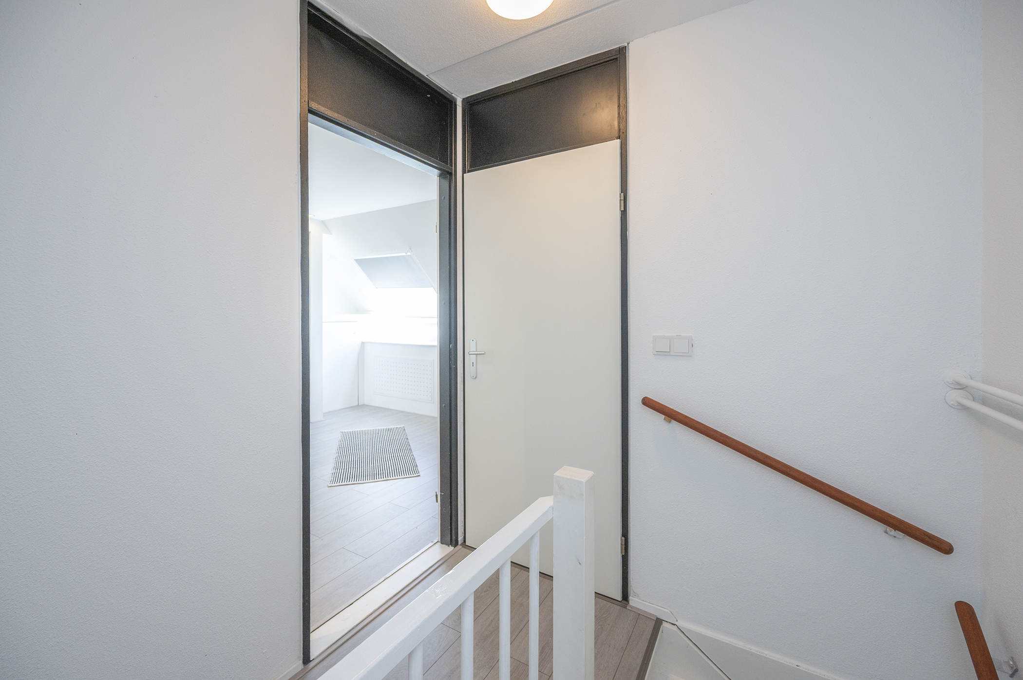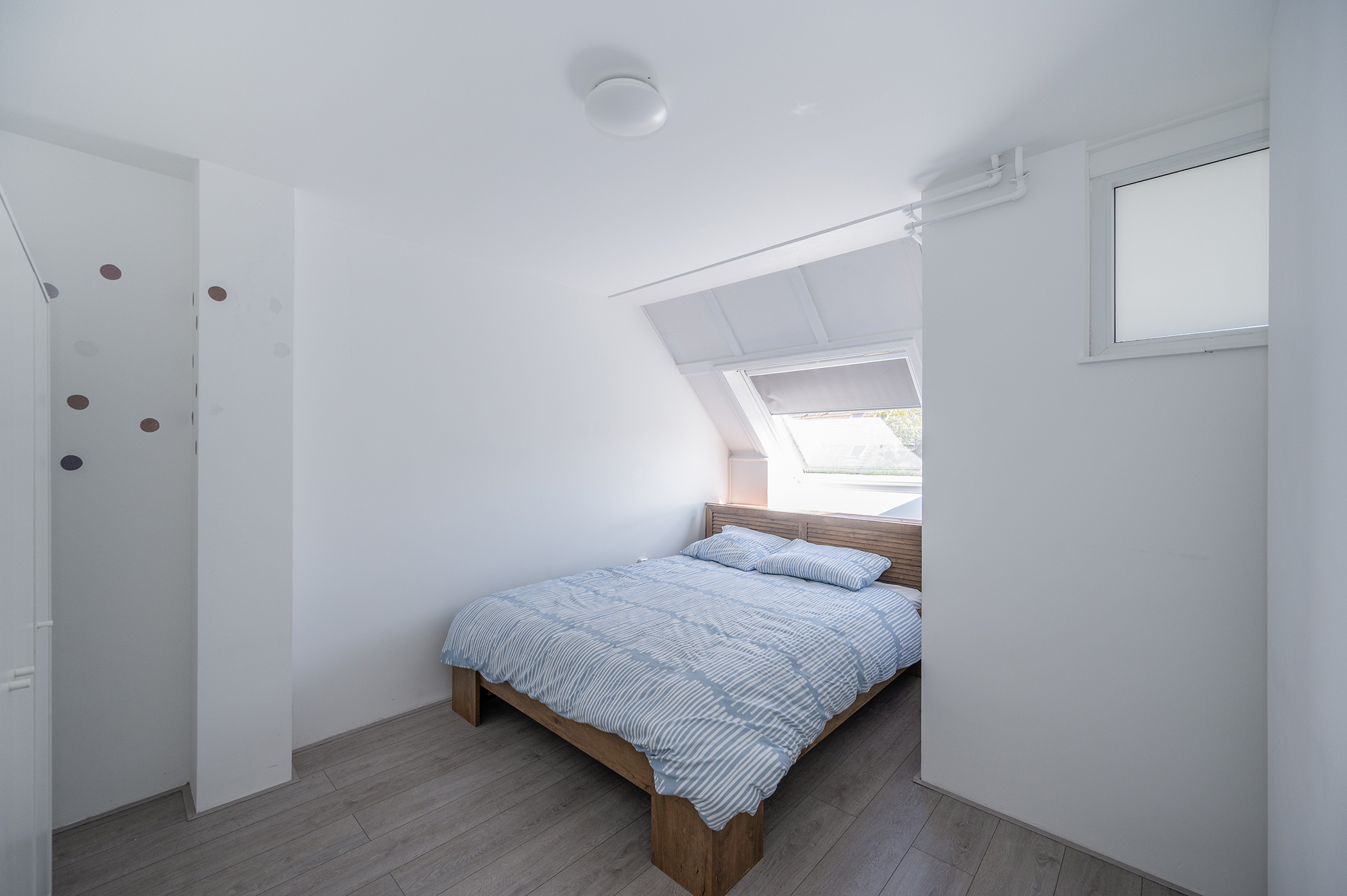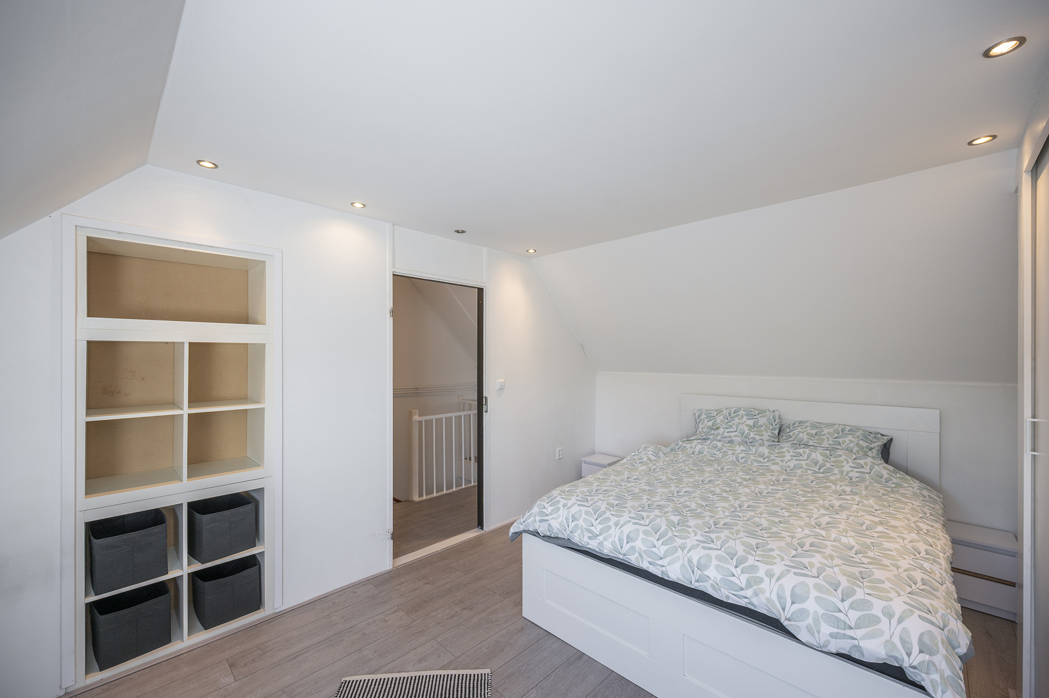 De tweede verdieping bestaat uit een overloop met toegang tot een derde slaapkamer en een separate berging. Deze slaapkamer is eveneens ruim en kan uitstekend dienen als slaap-, werk- of hobbyruimte. In de berging bevinden zich de aansluitingen voor de wasmachine en is tevens de huur cv-ketel opgesteld. Ook hier is voldoende ruimte voor extra opslag.