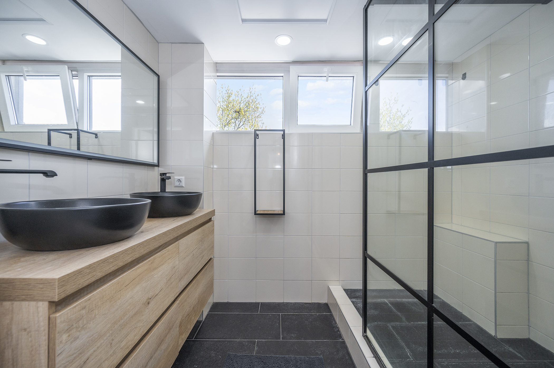 Op de eerste verdieping komt u op de overloop, die toegang biedt tot twee ruime slaapkamers en de badkamer. Beide slaapkamers zijn goed bemeten en beschikken over een prettige lichtinval. Eén van de slaapkamers geeft toegang tot een ruim balkon aan de voorzijde van de woning, waar u heerlijk kunt genieten van de buitenlucht. De badkamer is modern uitgevoerd en voorzien van een comfortabele inloopdouche en een dubbele wastafel, waardoor deze ruimte geschikt is. Daarnaast is er op deze verdieping een separaat toilet aanwezig, wat extra gemak biedt.