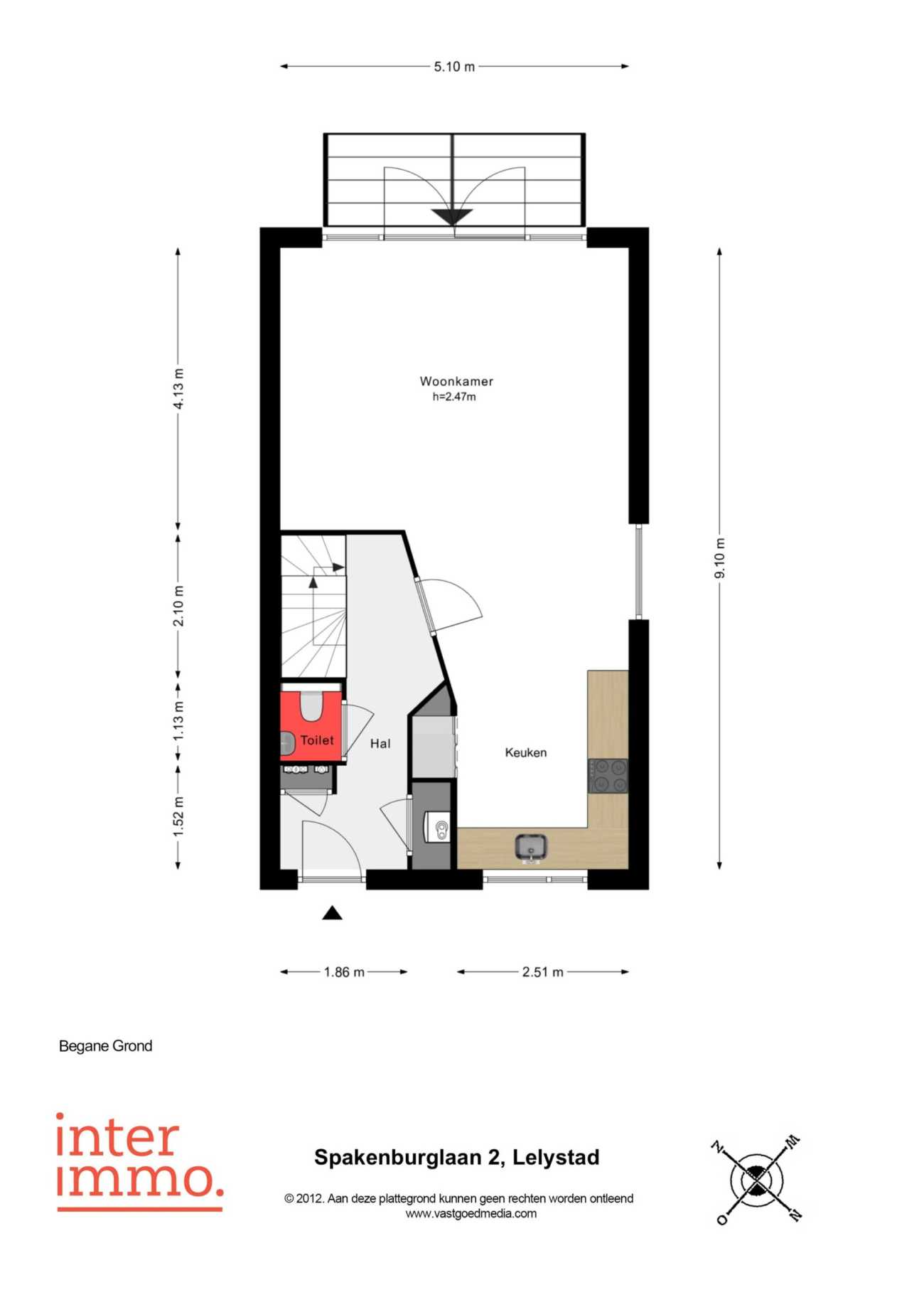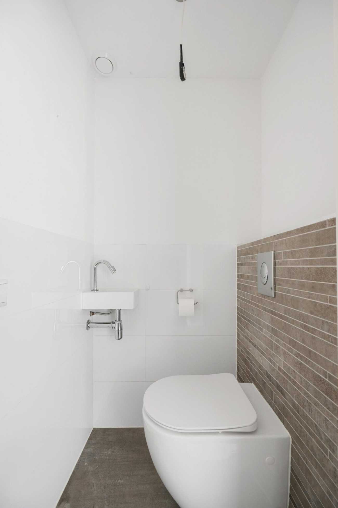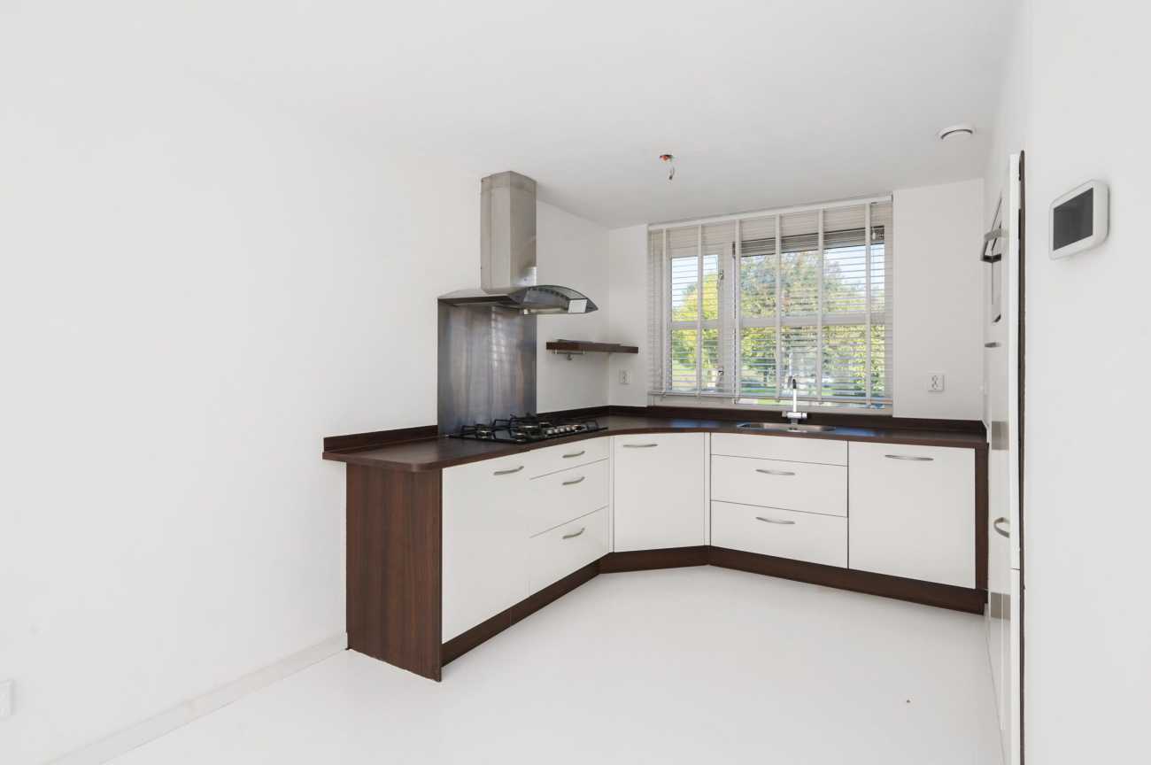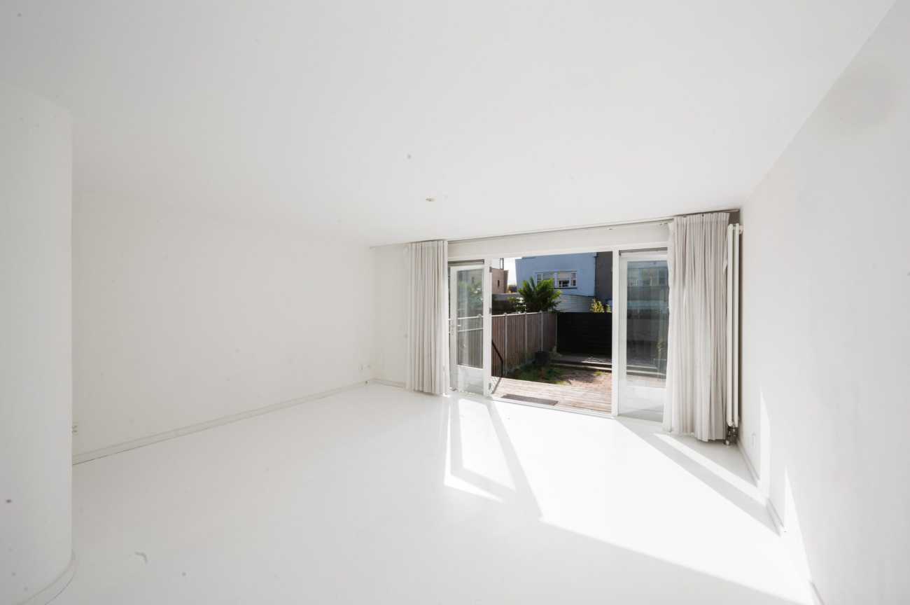 Via een brede betonnen trap bereikt u de entree van de woning. De hal biedt toegang tot de meterkast, een modern toilet met hangend closet en fonteintje, de trap naar de eerste verdieping en de trap naar de inpandige studio. Vanuit de hal bereikt u de ruime, tuingerichte woonkamer, voorzien van een extra zijraam dat vrij uitzicht biedt, en een deur naar de zonnige achtertuin. De keuken, gelegen aan de voorzijde van de woning, is uitgevoerd in neutrale tinten en voorzien van diverse inbouwapparatuur, waaronder een afzuigkap, gaskookplaat, oven, vaatwasser en koelkast. De woonkamer is speels ingedeeld en biedt verschillende mogelijkheden voor inrichting. De vloer is voorzien van een nette laminaatvloer en de wanden zijn strak afgewerkt.