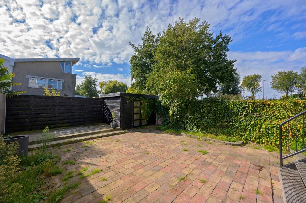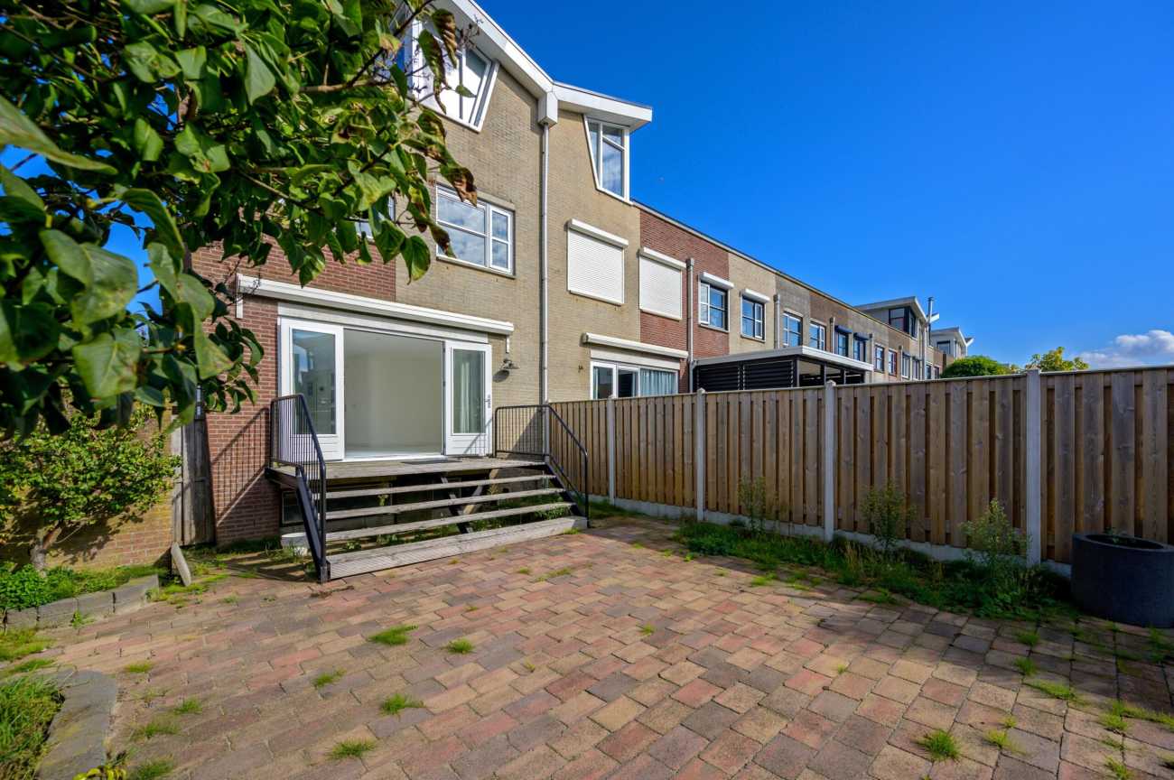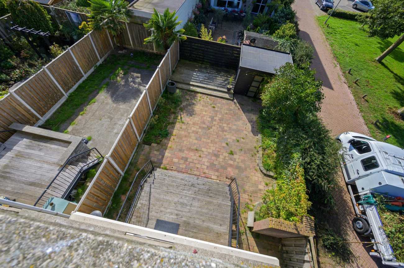 De achtertuin is gunstig gelegen op het zuidwesten en biedt diverse terrassen. Direct aan de woonkamer bevindt zich een houten terras op woonkamerniveau. Vier treden lager ligt een tweede terras, omgeven door bestrating en beplanting – een heerlijke plek om te ontspannen en te genieten van de zon. De tuin heeft een breedte van circa 7 meter en een lengte van circa 12 meter en is vrijwel onderhoudsvrij, waardoor u optimaal van uw buitenruimte kunt genieten.