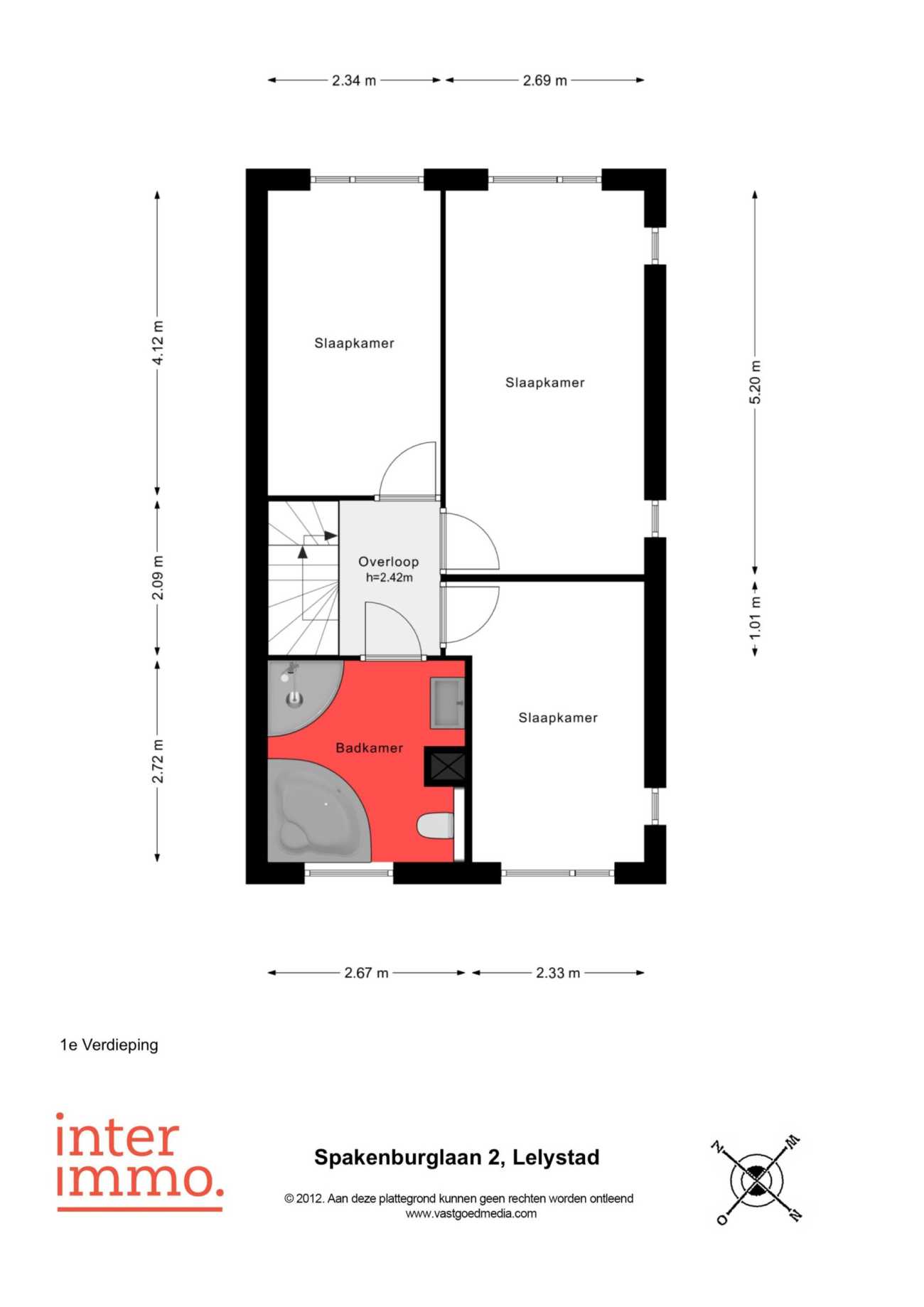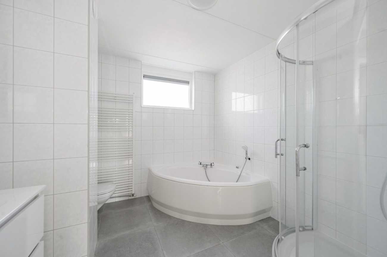 De overloop geeft toegang tot drie royale slaapkamers. Twee slaapkamers bevinden zich aan de voorzijde van de woning, de derde aan de achterzijde. De kamers zijn flexibel in te delen en kunnen uitstekend dienstdoen als slaapkamer of werkkamer. De volledig betegelde badkamer, eveneens gelegen aan de voorzijde, is voorzien van een hoekligbad, douchecabine, wastafelmeubel, tweede toilet, radiator en een raam voor daglicht en natuurlijke ventilatie. Ook deze verdieping is voorzien van een nette laminaatvloer en strak afgewerkte wanden.