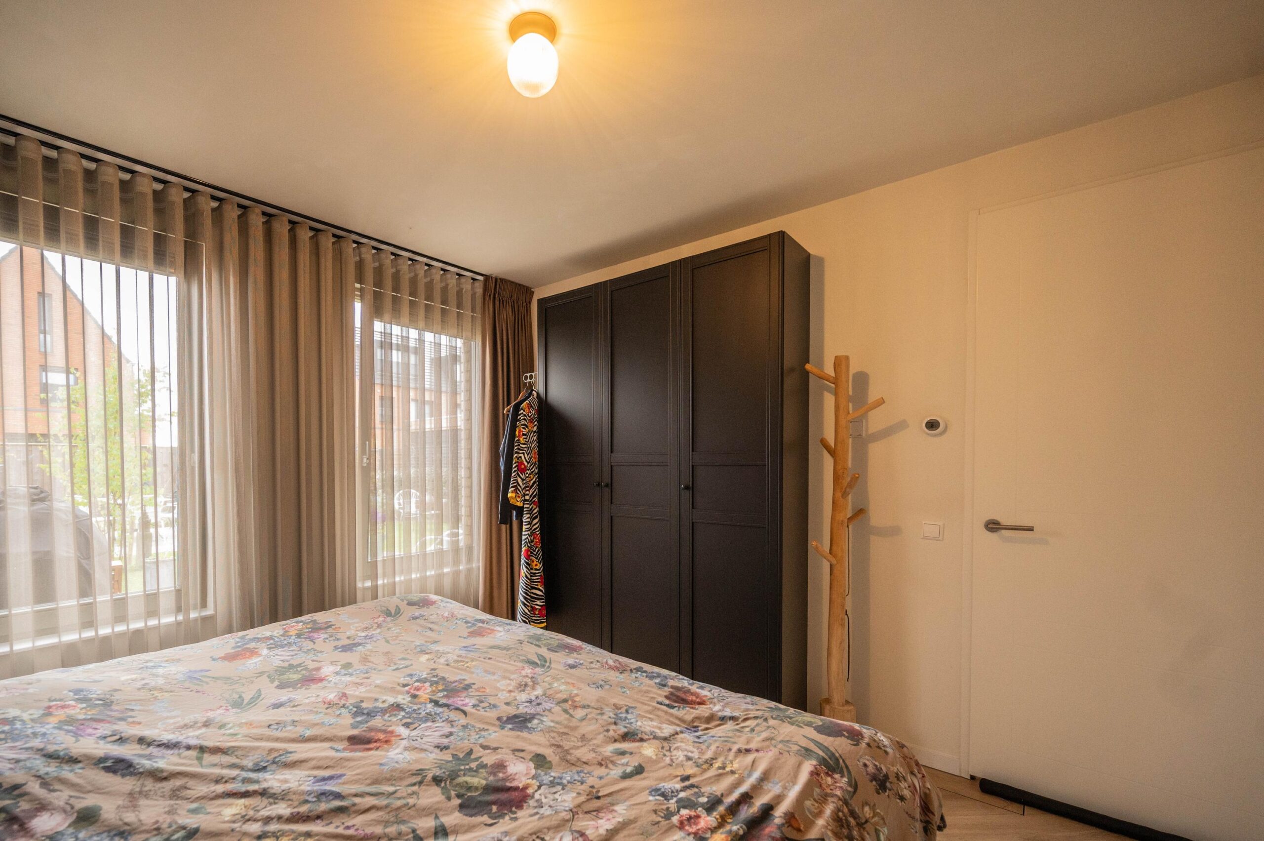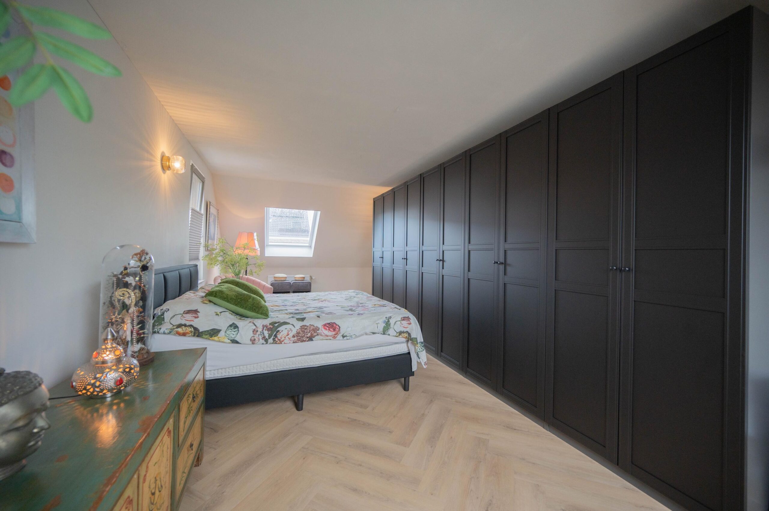 Op de eerste verdieping bevinden zich twee ruime slaapkamers. De master bedroom biedt volop kastruimte en een praktische kleedruimte. In de kleedkamer bevindt zich een kastenwand en daarnaast is er nog een extra hoek die uitstekend geschikt is om een inloopkast te realiseren. De woning beschikt in het geheel over voldoende kastruimte.