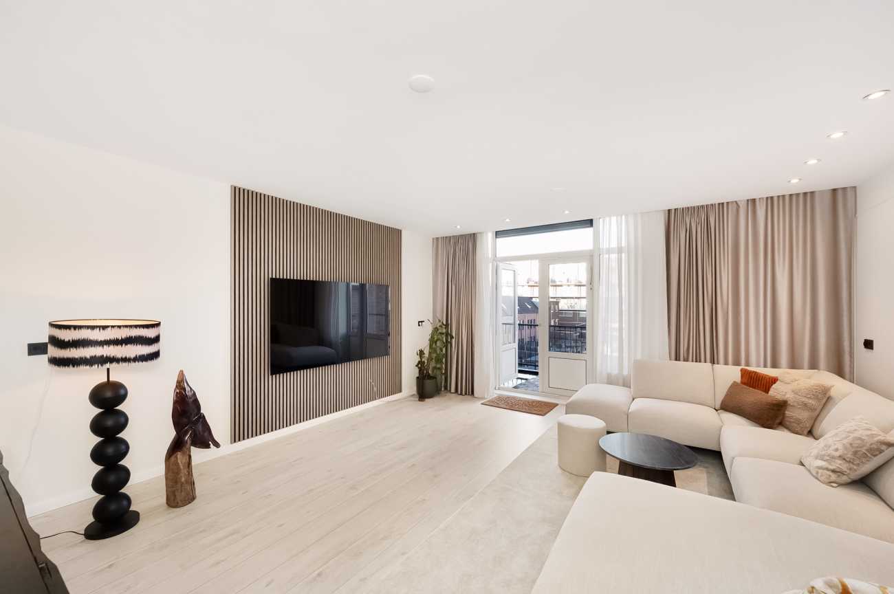 Via uw eigen voordeur en trappenhuis bereikt u de overloop op de tweede verdieping. Aan de achterzijde is de riante en luxe afgewerkte woonkamer. Vanuit de woonkamer is er via twee openslaande deuren toegang tot het balkon. Aan de voorzijde is de moderne keuken voorzien van inbouwapparatuur o.a. een inductie kookplaat, afzuiging, combi oven, vaatwasser en een koelkast met vriezer. Separaat is het toilet.