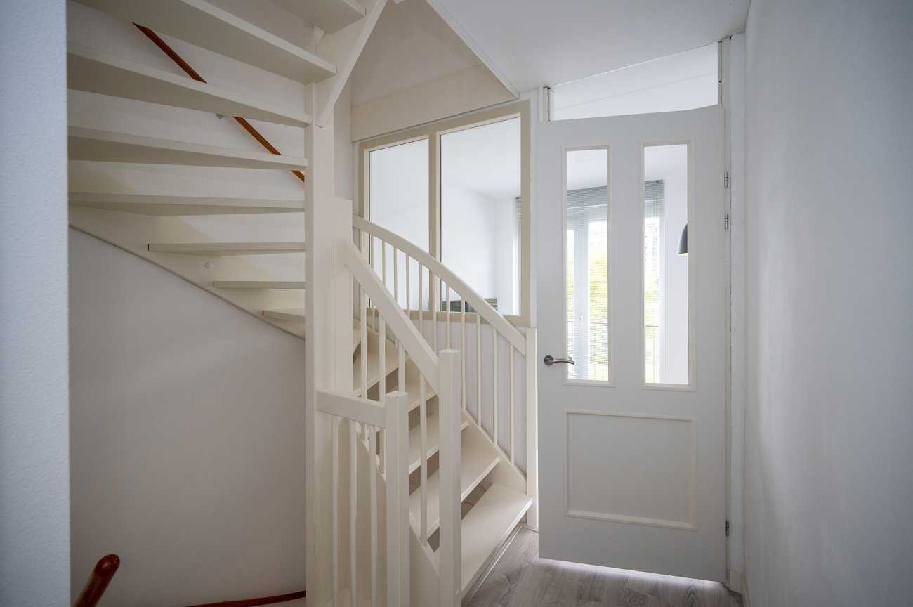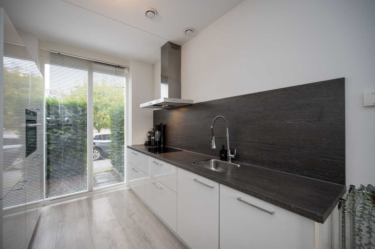 Begane grond: Ruime hal met meterkast en separaat toilet. Moderne keuken voorzien van diverse inbouwapparatuur, waaronder oven, vaatwasser en inductiekookplaat. Vanuit de keuken toegang tot de achtertuin, schuur en achterom.
