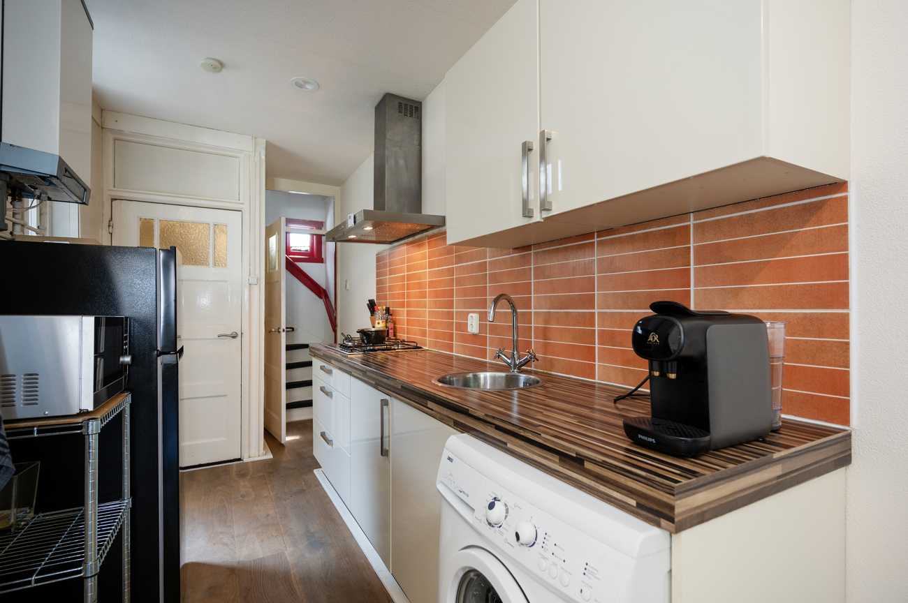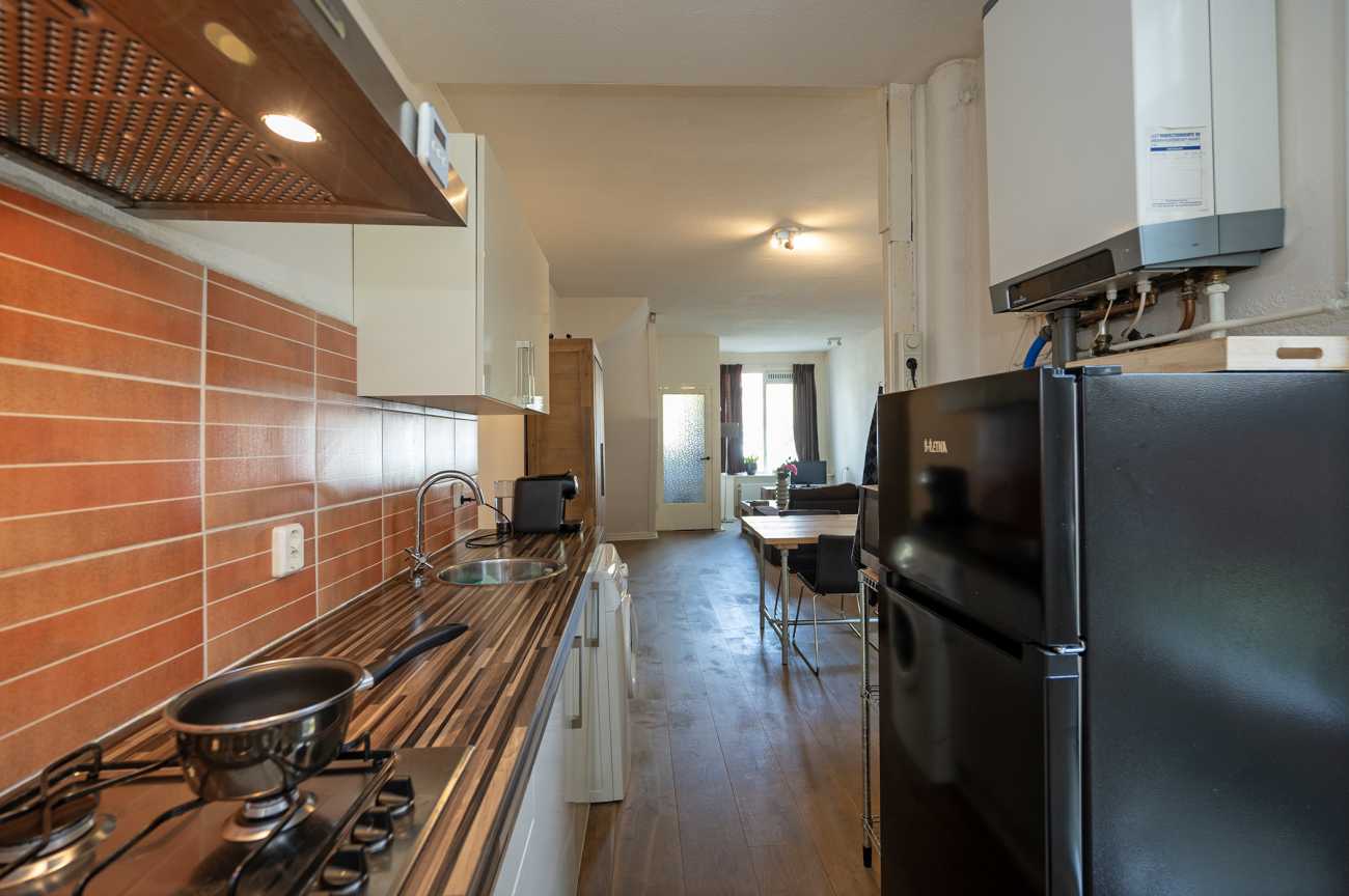 Op de begane grond vind je de lichte woonkamer die direct grenst aan de knusse achtertuin met berging – ideaal voor een rustige ochtend met een kop koffie. De open keuken is voorzien van inbouwapparatuur, waaronder een gasfornuis en afzuigkap. De badkamer op de begane grond beschikt over een inloopdouche en een toilet.